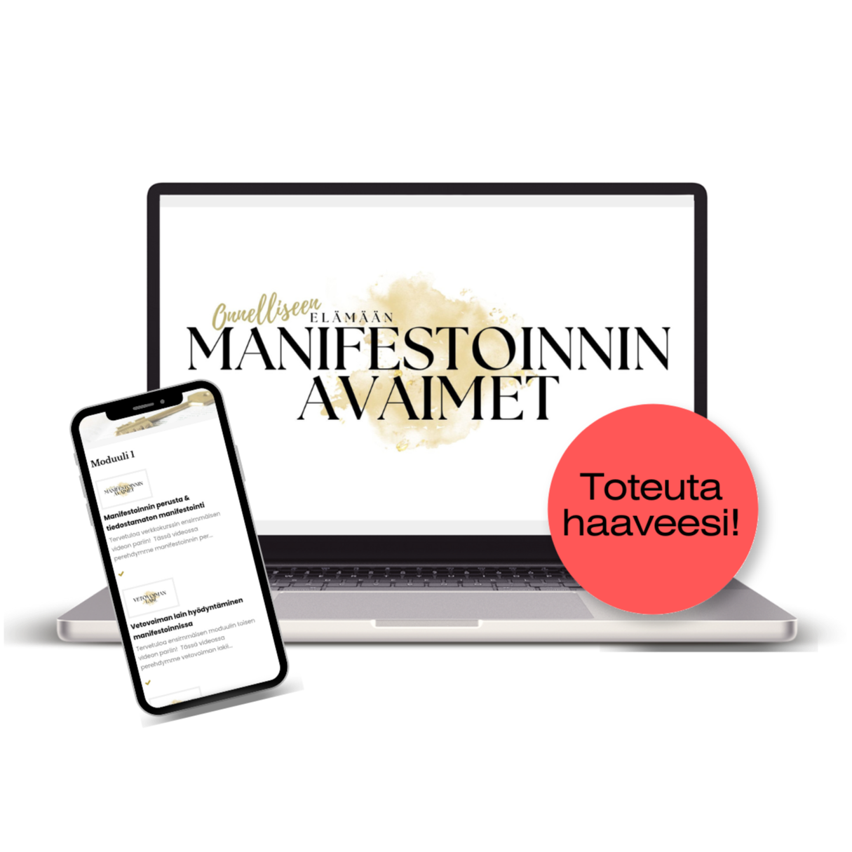 Manifestoinnin Avaimet™ -kurssi antaa sinulle selkeät ja helpot keinot manifestoinnin omaksumiseen tavalla, joka oikeasti toimii.